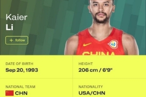 经求证,李凯尔的国籍信息还是以国际篮联官网为准,目前FIBA官网的信息显示李凯尔代表的是中国男篮国家队。据悉,未来,李凯尔大概率还会来CBA效力。